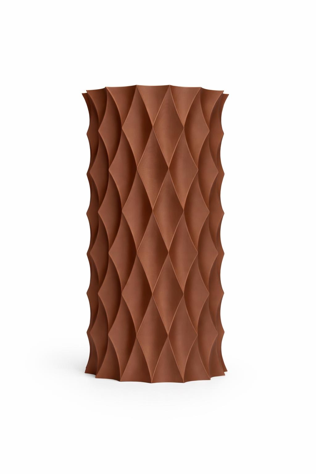 Bronze Nocturne Vazo Serisi, organik akışkan formlar ve geometrik ritimlerin bir araya geldiği üçlü vazo setidir. Tek başına odak noktası olabileceği gibi birlikte kullanıldığında mekana bütüncül bir sanat objesi etkisi katar.