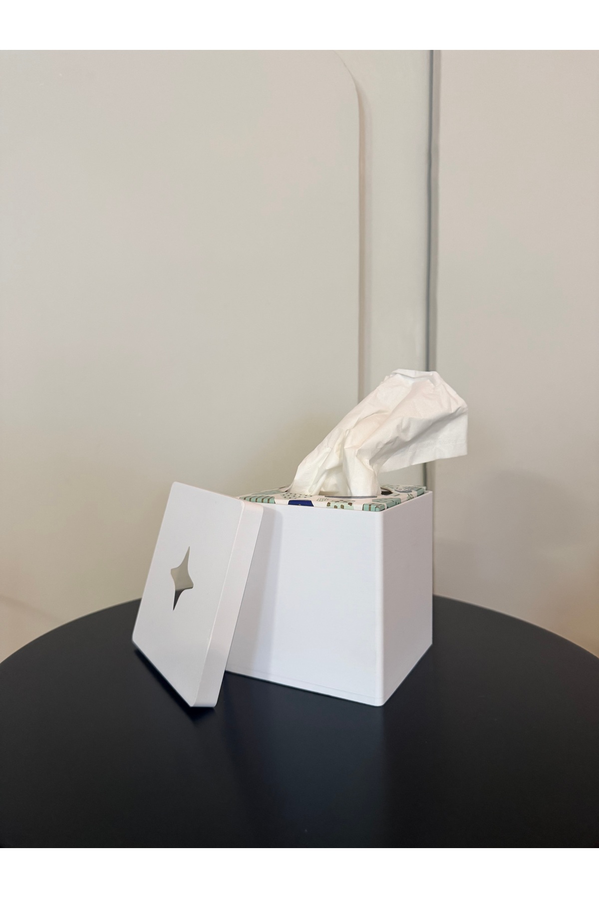 Sıkıcı mendil paketleri ile evinizin dekorasyonunu bozmaya gerek yok.; Artık tarzınıza ve ihtiyacınıza göre mendil kutuları var.; 3 boyutlu yazıcıda biyoplastik malzeme ile üretilmiştir.; Uzun süre güneş altında kullanılması önerilmez.; Boyut: 120×120