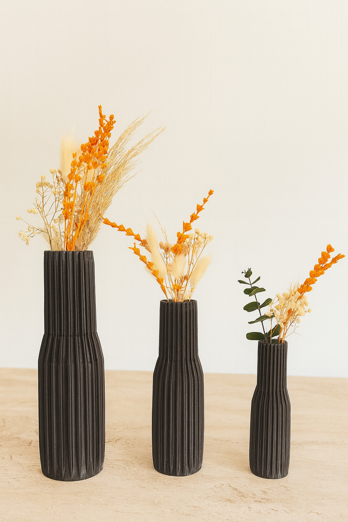 Üçlü Paris Vazo Set (Kuru Bitki Hediyeli)